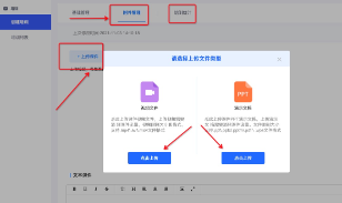 3.进入「附件管理」页面点击「上传课件」,可上传本地视频和演示文稿的课件附件,也可以手动输入文本类型的课件,完成后点击保存
